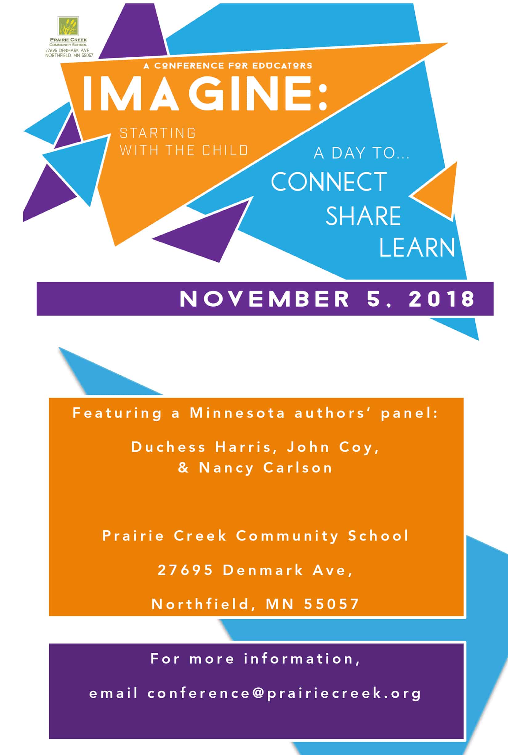 Prairie Creek Community School is hosting an all-day conference on November 5, 2018 for educators, pre-service teachers, and administrators who are seeking innovative child-centered practices for their classrooms and schools.