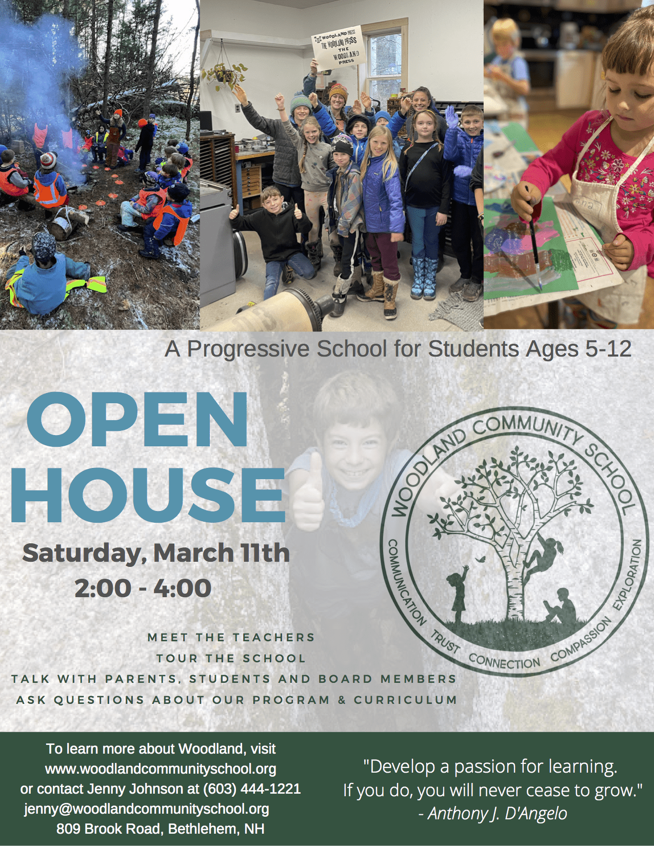 If you are curious about progressive education, project based learning, enrollment for the 2023-2024 school year, or volunteer opportunities at Woodland, this event is for you!
