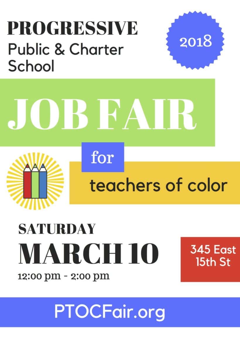 The 4th Annual NYC Progressive Public & Charter School Job Fair for Teachers of Color will take place March 10th downtown at the Institute for Collaborative Education. Finding the right school can be hard – our goal is to connect progressive schools with diverse educators who share the same educational beliefs, values, and goals. Your dream school is waiting – don’t miss out! Co-founded by two classroom teachers in 2015, the fair has quickly grown to become one of the largest public-charter job fairs in New York City! Come network with like-minded educators, meet school leaders, and enter raffles for demo coaching and resume review!